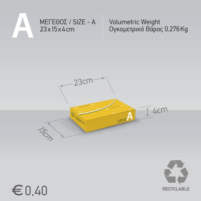 | Α | 230 x 150 x 40 mm | € 0,40 |