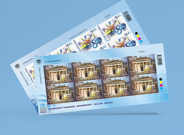 Στις 22 Φεβρουαρίου, 2024 κυκλοφορεί η αναμνηστική σειρά γραμματοσήμων «Επέτειοι και Γεγονότα- 100 Χρόνια Ελληνικού Γυμνασίου Αμμοχώστου και 80 Χρόνια ΣΕΚ» η οποία αποτελείται από δύο γραμματόσημα αξίας €0,34, και €0,41 σε φύλλα το οκτώ γραμματοσήμων και δύο ΦΠΗΚ αξίας €0,77 και €0,86. Μπορείτε...