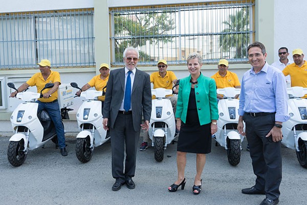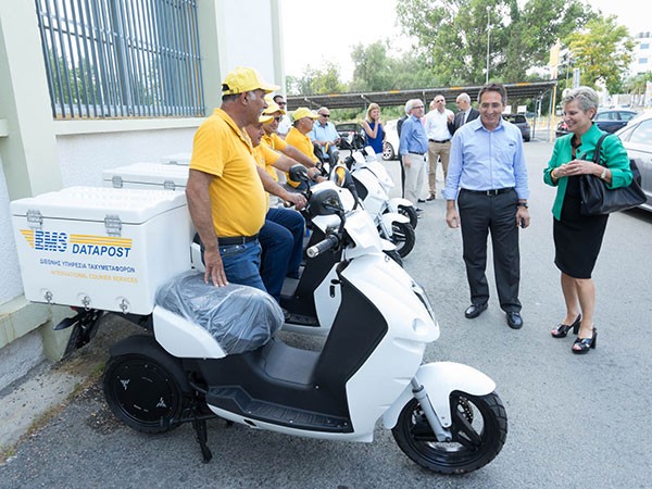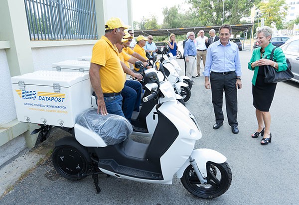 Τα Κυπριακά Ταχυδρομεία παρέλαβαν, σήμερα, Παρασκευή, 14 Ιουνίου 2019 στην παρουσία της Υπουργού Μεταφορών, Επικοινωνιών και Έργων, κας Βασιλικής Αναστασιάδου, τις πρώτες πέντε ηλεκτροκίνητες μοτοσυκλέτες, οι οποίες θα χρησιμοποιηθούν για τη διανομή αντικειμένων της Υπηρεσίας Ταχυμεταφορών εξωτερικού EMS Datapost, δεμάτων, μικροδεμάτων και αλληλογραφίας.