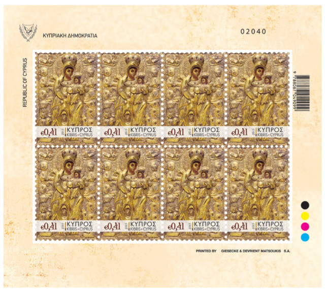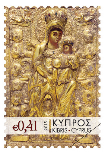 The impressive silver gilt (1815) that adorns the €0,41 stamp, showing the Virgin Mary - “Kyra Makedonitissa” - holding the Christ child, is in the iconographic style of “Anothen oi Profites” (“Above the Prophets”).