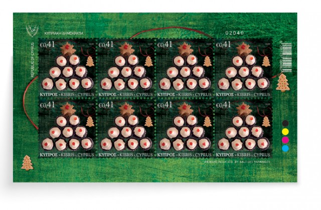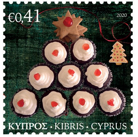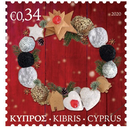 The two stamps present traditional Cypriot sweets in Christmas format.