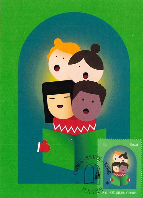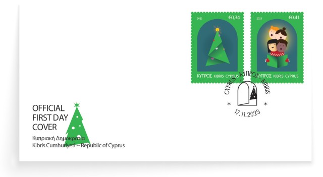 The two festive stamps depict the festive spirit of Christmas with children singing carols and a decorated Christmas tree.