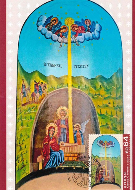 The 64 cent stamp depicts the Nativity of Christ.
