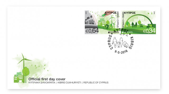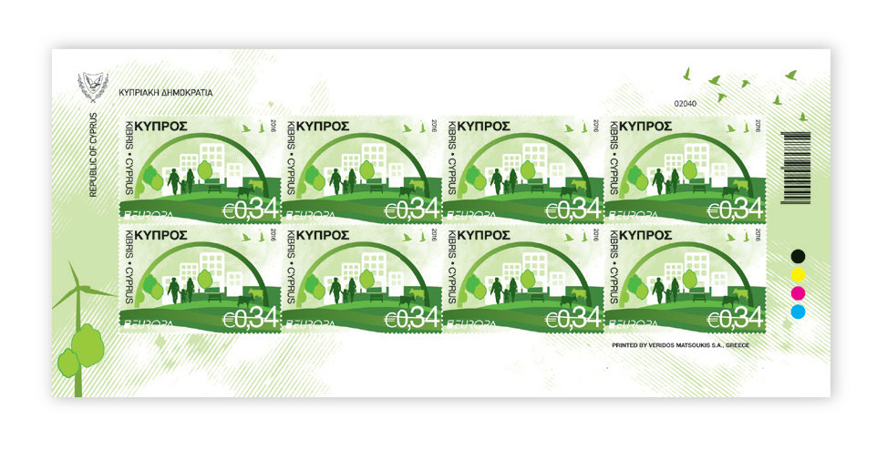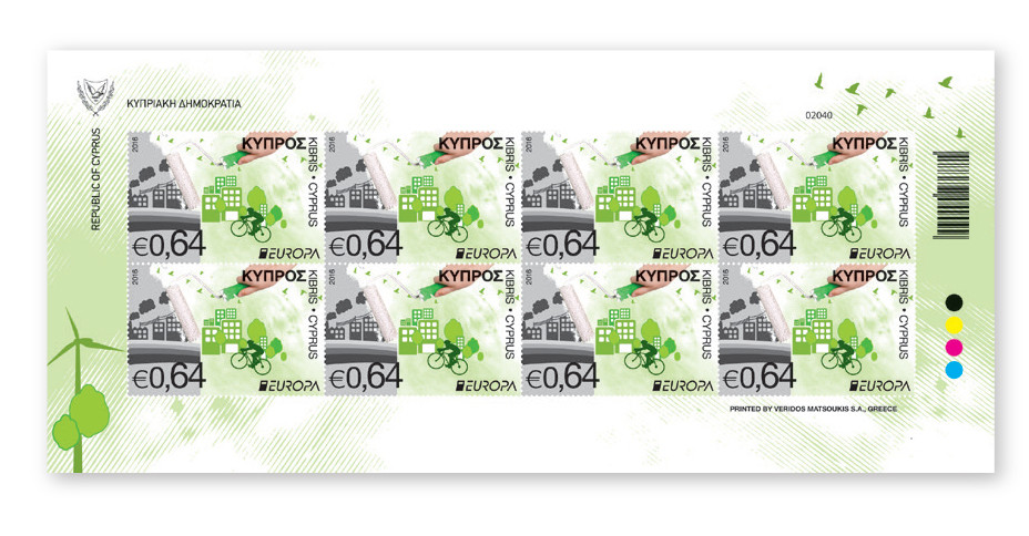 "Think Green" was the theme chosen by PostEurop for this year’s Europa stamp issue. Ιn designing the 64 cent stamp the artist has cleverly conveyed the view that it is up to us individuals to create a greener planet.