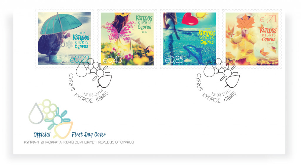 The stamps in this series graphically illustrate the four seasons, as each one occurs in Cyprus and in other countries of the temperate zone.