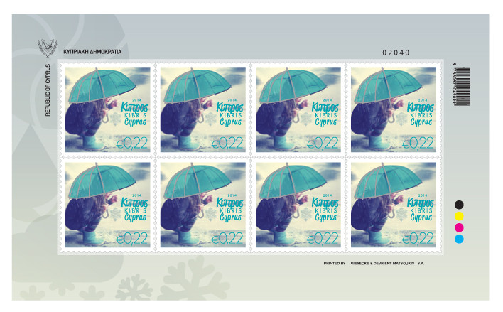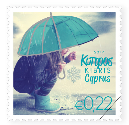 The €0,22 stamp illustrates winter. It is a period of rainfall, snow and generally bad weather, but also the time of the major holidays of Christmas and New Year.