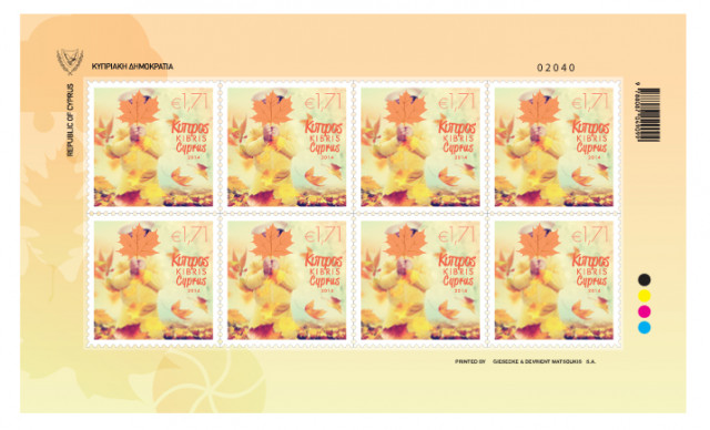 The €0,43 stamp illustrates spring, the sweetest season of the year. In this season all nature celebrates, the trees and the valleys are clothed in their green beauty and the migratory birds return once again to their nests. This season is glorified with the Resurrection and May Day.